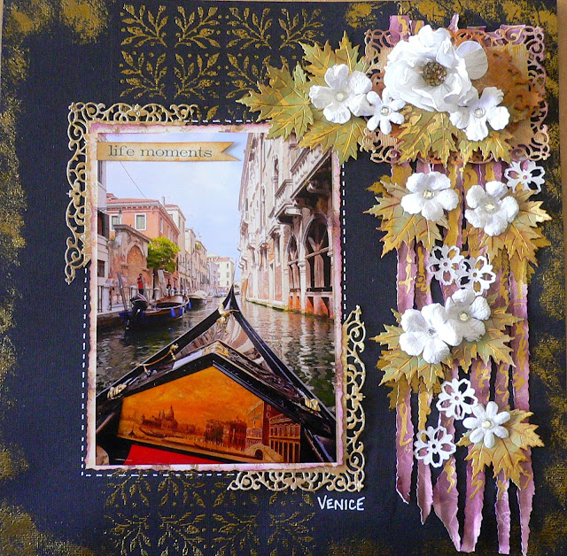 Beautiful Venice - you always bring back wonderful memories with you travel layouts. Love the embossing and the elegant die frame. The flowers are lovely too. :D