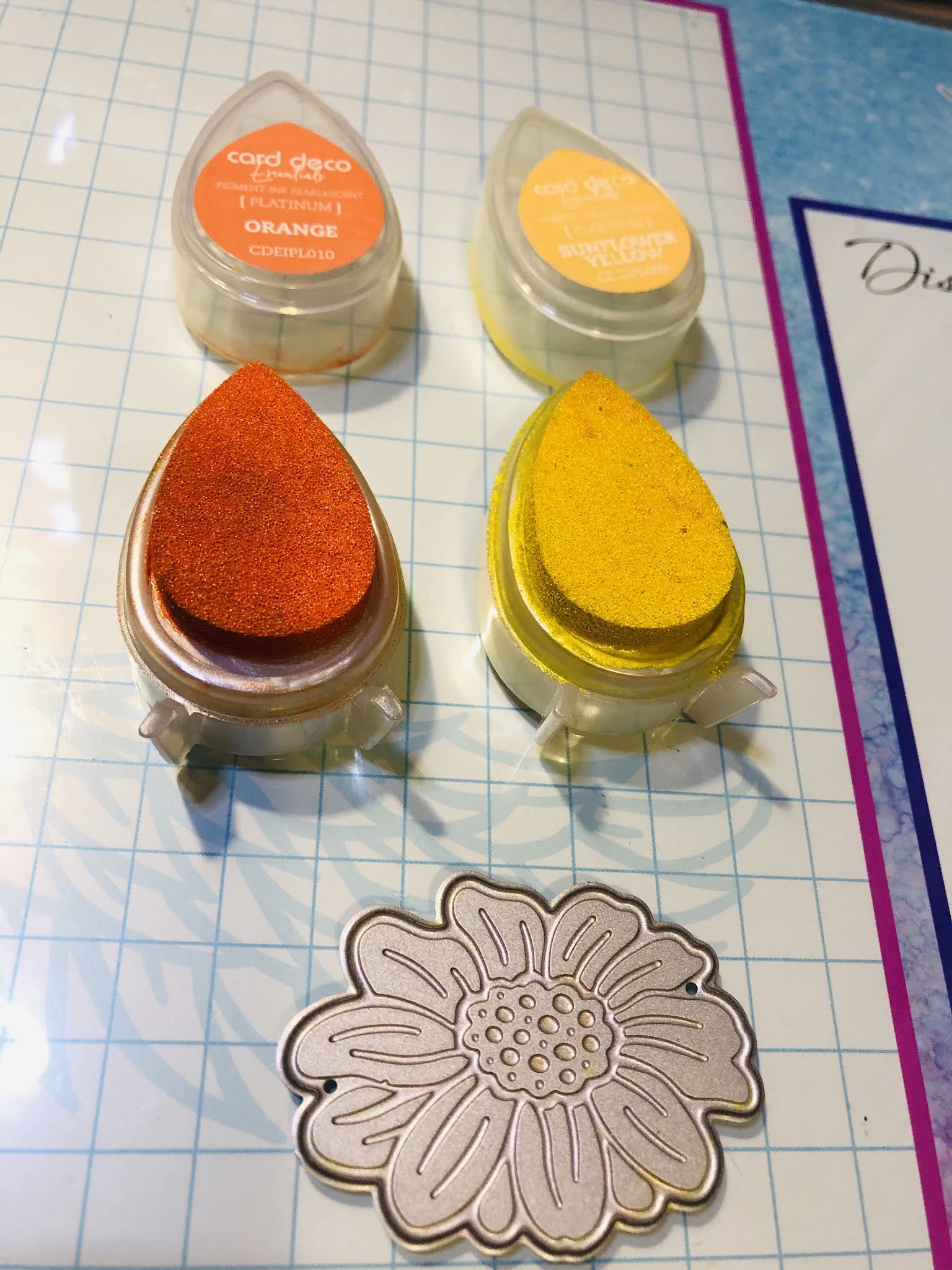 This time I am playing with some yupo paper, alcohol inks and the brand new Stayz in Place ink pads- for the background of my card, teaming up with the Cut and Create dies using pigments inks instead of foiling them.